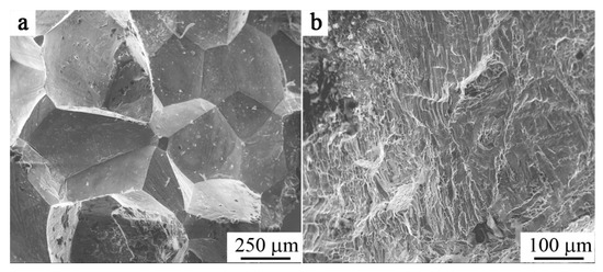 SEM images of fracture surface of the specimens of (a) Cu-14Al-3Ni and (b) Cu-10Al-3Ni [48].