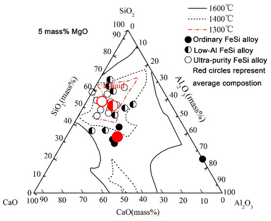 - Xu, J.; Wang, K.; Wang, Y.; Qu, Z.; Tu, X. Effects of ferrosilicon alloy, Si content of steel, and slag basicity on compositions of inclusions during ladle furnace refining of Al-killed steel. J. Iron Steel Res. Int. 2020, 27, 1011–1017. [Google Scholar] [CrossRef]