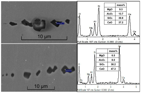 3.2.2. Effect of Calcium Content on the Amount and Size of Inclusions