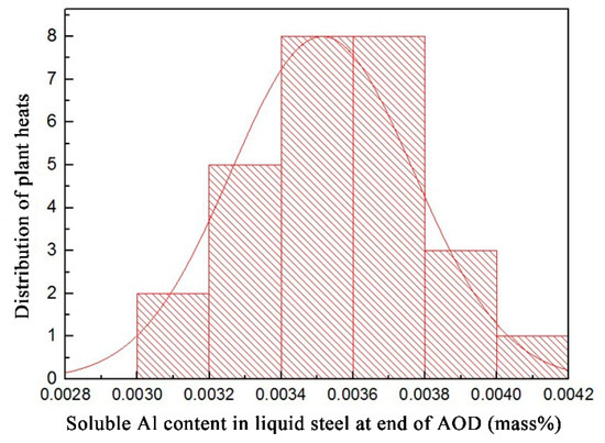 | low-Al FeSi alloy | AOD oxidation stage | 0.142 | 0.00 | 0.12 | 0.030 | 0.0813 | 17.52 | 8.09 | 0.0026 | 0.102 |