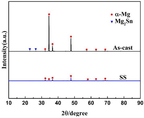 XRD pattern of the as-cast and SS Mg–5Sn alloy.