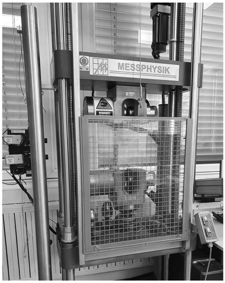 The tensile testing was performed using the Messphysik Beta 300 tensile test machine (MESSPHYSIK MATERIALS TESTING GmbH, Fürstenfeld, Austria) (Figure 1) according to ISO 6892-1.