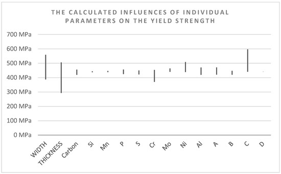 Moreover, the influences of individual parameters on the yield strength while separately changing individual parameter within the individual parameter range were calculated (Figure 3). It is possible to conclude that according to linear regression results the most influential are silicate type of inclusions (C).