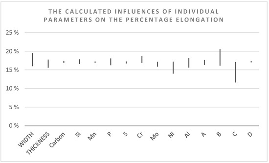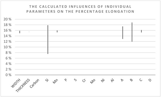 Moreover, the influences of individual parameters on the percentage elongation while separately changing individual parameter within the individual parameter range were calculated (Figure 4). It is possible to conclude that according to linear regression results the most influential are alumina and silicate type of inclusions (C).