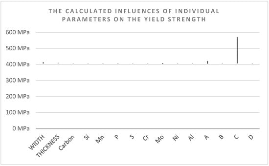 Moreover, the influences of individual parameters on the yield strength while separately changing individual parameter within the individual parameter range were calculated (Figure 8). It is possible to conclude that according to genetic programming results, the most influential are silicate type of inclusions (C).