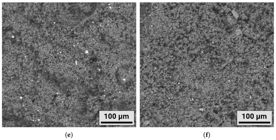 The microstructure and fracture surfaces of the fabricated samples were examined using a LEO EVO 50 (Carl Zeiss, Jena, Germany) scanning electron microscope (SEM) using secondary electron (SE) and backscattered electron (BSD) detectors. The attachment for energy-dispersive X-ray spectroscopy (EDX) was used to investigate the point elemental composition of the samples (Oxford instruments, Abingdon, UK). The phase composition was investigated by means of X-ray diffraction (XRD) using the Shimadzu XRD-7000 (Shimadzu, Kyoto, Japan) set-up in a Bragg–Brentano configuration with CuK radiation (wavelength = 1.54 Å) at 40 kV and 30 mA. The PDF4+ 2021 database and SIeve software (2.0, Retsch GmbH, Haan, Germany) were used to identify the phase composition of the samples.