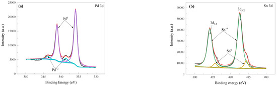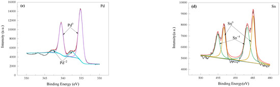 High-resolution XPS spectra of Pd 3d and Sn 3d before and after acceleration process. XPS of Pd 3d (a) and Sn 3d (b) before acceleration process, and XPS of Pd 3d (c) and Sn 3d (d) after acceleration process.