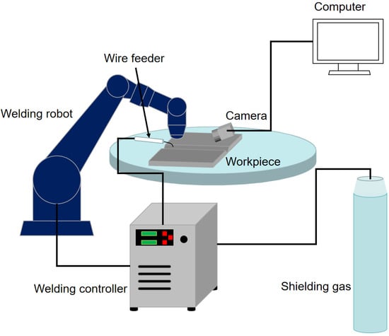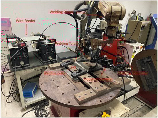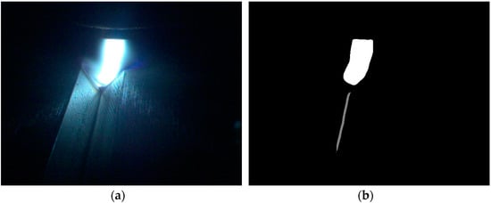 In traditional off-line welding modes, the trajectory of the welding torch needs to be set in advance. The acquisition of the motion trajectory mainly depends on advance measurements to calculate the motion trajectory and pass the information to the robot. However, these methods cannot adjust the position of the welding torch according to the situation during the welding process, causing some precision problems. The development of automation technology has had a huge impact on the field of robotic welding, and various forms of welding involving automation solutions based on different physical features are constantly being proposed. Among them, vision-based welding automation has unique advantages in terms of feature extraction []. Compared with traditional welding solutions, vision-based automated welding solutions significantly improve the work efficiency and welding quality. The traditional welding quality improvement strategy mainly relies on the use of additional equipment to improve the welding quality, but it still requires a lot of manual work. On the contrary, vision-based automated welding robots can select welding paths and welding parameters for different welding conditions without relying on experience to gradually set the relevant parameters []. Vision-based welding automation approaches can easily and intuitively obtain image features of the welding arc and seam, which can greatly facilitate the feature extraction required for the subsequent welding seam tracking.