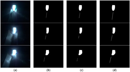 - It is verified that the segmentation effect of BiseNetV2 with OHEM is significantly better than that of BiseNetV2 and ICNet. In the designed feature extraction comparison experiment, the following results can be obtained using BiseNetV2 with OHEM. The IoU of the arc is 92.1%, the IoU of the seam is 55.1%, and the mIoU is 72.6%. Compared with ICNet and BiseNetV2, although the IoU of the arc part is slightly lower, the IoU of the seam part, which is more difficult to segment, is significantly higher and the mIoU is also higher;