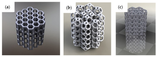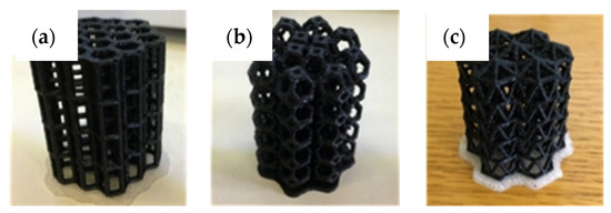 Printed PLA foams: (a) hexagonal with rectangular cell; (b) truncated octahedron; (c) icosahedron.