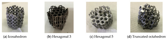 Al open cell manufactured foams: (a) icosahedral; (b) hexagonal; (c) hexagonal; (d) truncated octahedral.