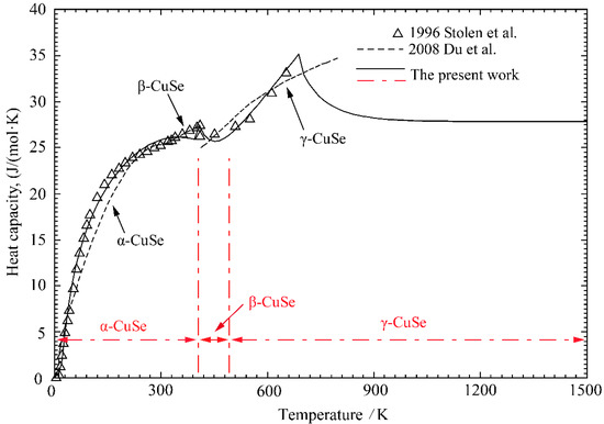 Because of the sufficiency of the heat capacity data for the compound CuSe [40], the of CuSe is given by the formula: