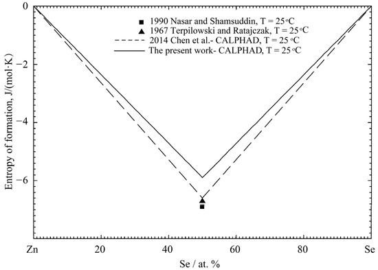 where is the molar enthalpy of the given substance generated by the pure element ( of the stable element was determined as 0 J·mol at T = 298.15 K and the pressure of 101.3kPa, as the reference state), is the molar entropy at T = 298.15 K and is the molar heat capacity. The heat capacity of alloys in the Zn-Se and Cu-Se binary systems, which were evaluated by the Neumann-Kopp rule [132], were not reported in the experiment.