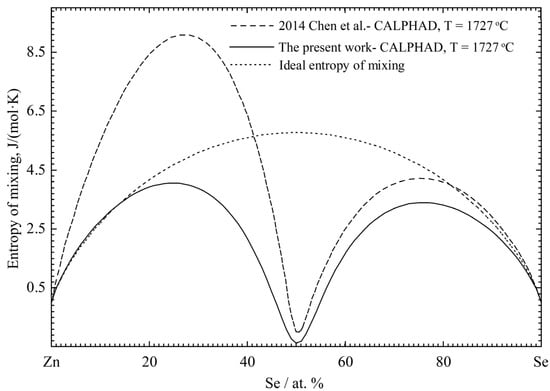 The melting point of ZnSe was measured at 1515 ± 20 °C by Fischer [105], at 1526 ± 10 °C by Sysoev et al. [106] and at 1522 ± 2 °C by Okada et al. [104]. Sharma and Chang [107] assessed the temperature to be 1526 °C. In the present work, the melting point of ZnSe was taken to be 1522 °C. Since the values of Fischer [105] and Sysoev et al. [106] were obtained under high pressure inert gas conditions, the Tm may be affected by the deviation from the congruent composition due to the dissociative evaporation of ZnSe.