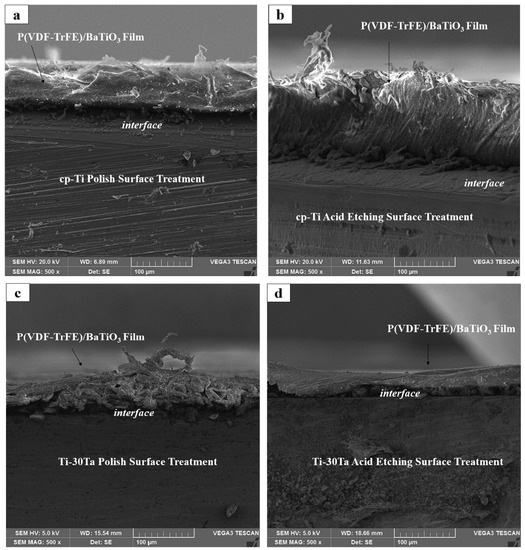 48]. For this reason, surface treatments performed on the samples standardized the surface roughness to analyze the best surface treatment obtained in this work when associated with the adhesive strength of the P(VDF-TrFE)/BaTiO