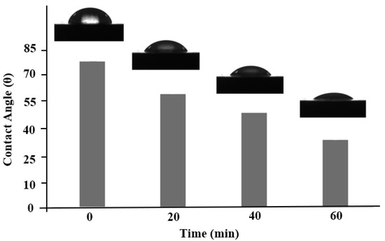 58]. The wettability of a surface can determine the success of the adhesion of the thin film to various substrates on account of the interface tension of the film in the liquid state and the surface energy of the substrate in a solid state. The adhesion strength between the two surfaces is determined by the interactive nature of both materials, which are dependent on wettability. The tension between the film and substrate interface determines the fixation of the coating on a solid surface, which means that hydrophilic surfaces provide better adhesion [