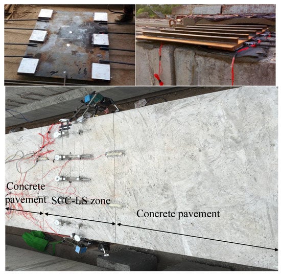 In order to verify the feasibility and effectiveness of the SCC-LS, a full-scale SCC-LS was installed between two beams, and a field test was designed (Figure 3).