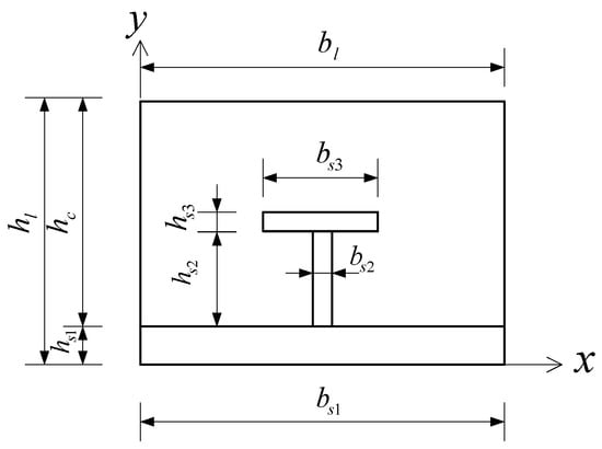 Due to the small cross-sectional area of the steel plate with a T-rib, the cross-sectional moment of inertia of the concrete in the SCC-LS can be simplified as Ic = bhc3/12, where hc = 82 mm, and the cross-sectional moment of inertia of the steel plate with the T-rib is: