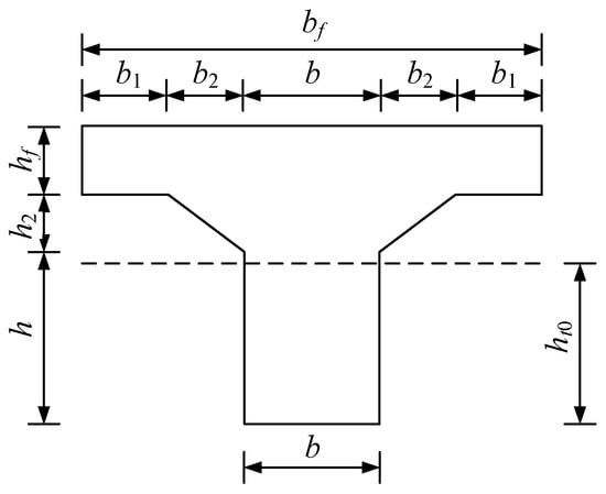 Figure 17 shows the dimension of section of the T-girder. The section area of plain concrete with a T-shaped section is Ac = bfhf + 1/2(bf − b)h2 + b(h + h2), and the section area of the connecting reinforcement is As = πd2/4, where, b = 350 mm, bf = 1200 mm, h = 450 mm, h2 = 150 mm, hf = 16,000 mm, d = 400 mm.