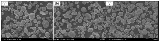 SEM images of HEA powder with different element contents. (a) FeCoCrNiAl; (b) FeCoCr1.5NiAl; (c) FeCoCr2NiAl.