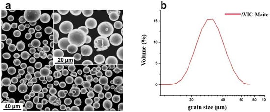 (a) LPBF images of the HX powders used in this study; (b) particle size distribution diagram of LPBF-HX tensile samples.