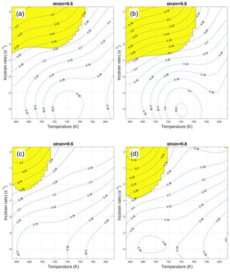 - The optimized deformation parameters for ternary alloy AA7003 were within a temperature range of 653–813 K and at strain rates lower than 0.3 S−1.