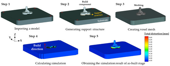 The sequence of numerical modeling using Simufact Additive in the present study.