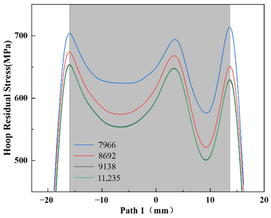Except for the heating rate of 106 °C/h, the value of hoop residual stress decreases with the decrease in heating rate. The changes in the radial and axial residual stresses at different heating rates are evident, but they are much lower than the residual stress after welding.