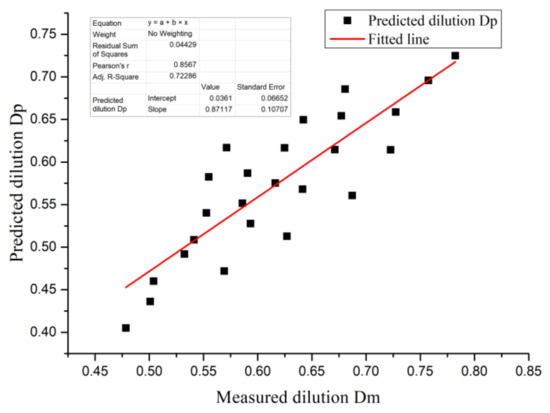 The method recommended by the EPRI is basically consistent with the dilution ratio measured under the conditions of this study, but the linear relationship between the predicted dilution ratio and the actual dilution ratio is not good, and the linear fitting degree is less than 0.8. Moreover, the predicted dilution ratio is small, with an average of 87% of the actual measured value. For major engineering applications, the prediction accuracy needs to be further improved.