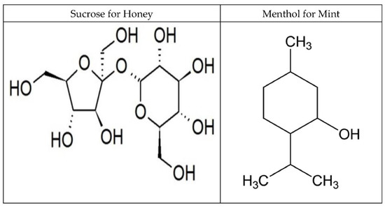 Honey and mint contain different ingredients, so the authors suggest choosing the key component, sucrose for honey and menthol for mint, for the theoretical analysis, which is depicted in Figure 1.
