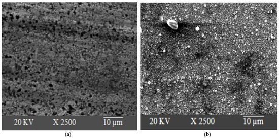 (a) SEM for pure aluminum in 1 M HCl in the absence of inhibitor; (b) SEM for pure aluminum in 1 M HCl in the presence of honey inhibitor.