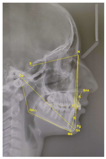 Figure 2. The linear and angular measurements were measured to the nearest of 0.1 mm and 0.1 degrees, respectively. Only the data with statistically significant changes before and after treatment are presented.