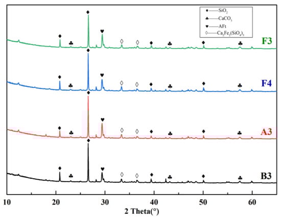 - The environmental load of the alkali-activated cement is significantly lower than that of Portland cement and sulphoaluminate cement. Compared with the A2 and B2 specimens, the primary energy consumption values of the F3 specimens are reduced by 1319.32 MJ and 945 kg, respectively. Moreover, the GWP decreased by 311.35 kg and 98.81 kg, respectively.