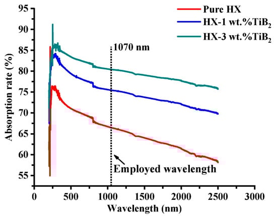 Diagram of laser absorption rate versus wavelength for all specimens [22].