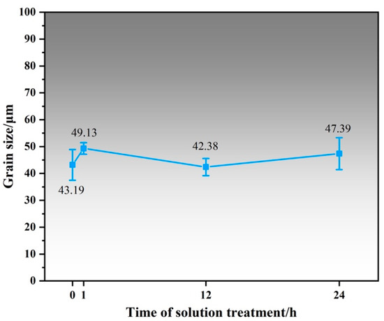 Grain size line chart of as-cast alloy and solid solution alloy.