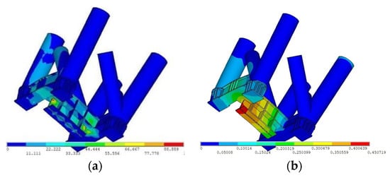 Cloud diagram of slipper stress and deformation (mm). (a) Stress cloud diagram, (b) deformation cloud diagram.