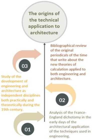 This research has three objectives (Figure 1). Firstly, it aims to shed light on the France-Britain dichotomy at the beginning of the architectural application of the techniques proposed “a priori” exclusively in engineering. This early application of new techniques in the field of architecture represents a conceptual breakthrough and a maturity of thought that redraws the history of modern architecture and beyond to the present day.