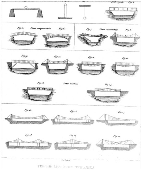 - Boudsot, M.A.-A. Graphical Extract from the Article Suspension Bridge Theory. Source: “Revue Générale de L’architecture et des Travaux Publics”, France, 1840: Volume 1, (Pl.4), p. Available online: https://portaildocumentaire.citedelarchitecture.fr/pdfjs/web/viewer.html?file=/Infodoc/ged/viewPortalPublished.ashx?eid%3DIFD_FICJOINT_FRAPN02_RA_1840_1802_PDF_1841 (accessed on 23 March 2022).