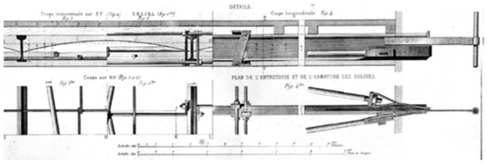 - Bleuze. Patent for Light Metallic Structures. Source: “Revue Générale de L’architecture et des Travaux Publics”, France, 1858: Vol.6, (Pl.34)., p. Available online: https://portaildocumentaire.citedelarchitecture.fr/pdfjs/web/viewer.html?file=/Infodoc/ged/viewPortalPublished.ashx?eid%3DIFD_FICJOINT_FRAPN02_RA_1858_1805_PDF_1851 (accessed on 23 March 2022).