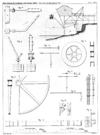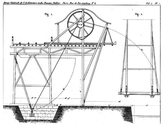 - Teisserenc. Detail of Machinery Used to Ship Coal in England (2). Source: “Revue Générale de l’architecture et des Travaux Publics”, France, 1840: Vol. 1, (Pl.8). P. Available online: https://portaildocumentaire.citedelarchitecture.fr/pdfjs/web/viewer.html?file=/Infodoc/ged/viewPortalPublished.ashx?eid%3DIFD_FICJOINT_FRAPN02_RA_1840_1803_PDF_1841 (accessed on 23 March 2022).