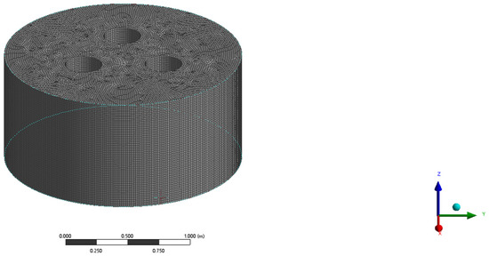 After simplification, the whole model is discretized using structural mesh, and the electrode end is refined to improve the accuracy of the calculation. The mesh results are shown in Figure 3.