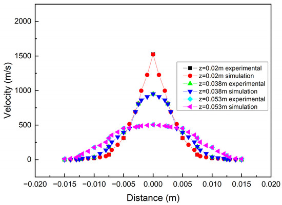 In this paper, the same two-dimensional physical model was established based on the BOWMAN experiment, and the simulation calculation was carried out [23]. The numerical calculation results based on the mathematical model in this paper were compared with the arc speed of 2160 A measured in BOWMAN’s high-current arc experiment in Figure 5, with the purpose of verifying the accuracy of the model. As can be seen in the figure, the simulated arc velocity results are consistent with the experimental results, which reflects the accuracy of the model to a certain extent.
