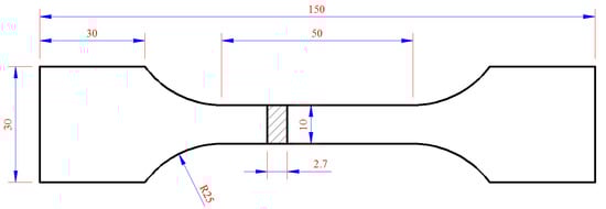 Plastic loss behavior was comprehensively reflected by the elongation and fracture morphology of the tensile specimen. The selected sample size is shown in Figure 2 and the test method reference was the standard ASTM E8 [19]. The fracture of the tensile specimen was observed by FEI QUANTA650 Field Emission Scanning Electron Microscopy.