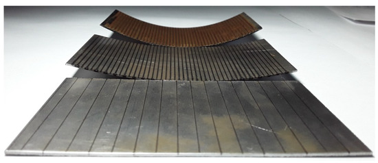 In Figure 1, some of the laser-formed cylindrical surfaces obtained from LFP with different input parameters that lead to the fabrication of cylindrical surfaces with different radii of curvature are shown.