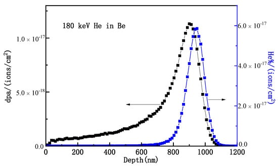 3.2. Microstructure Evolution of Helium Implanted Beryllium