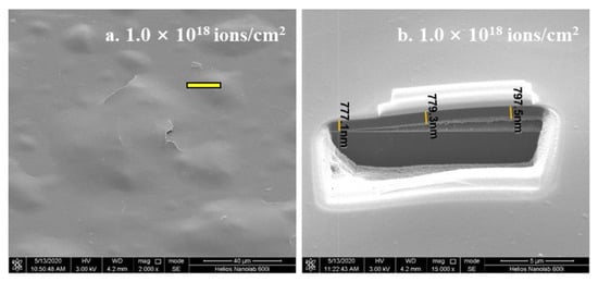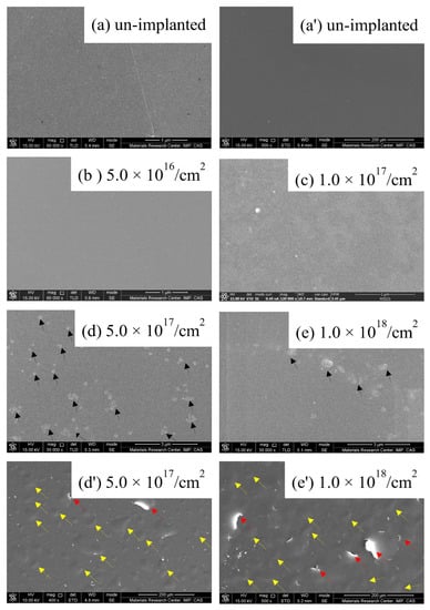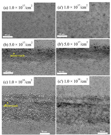 | Fluence (Ions/cm2) | 5.0 × 1016 | 1.0 × 1017 | 5.0 × 1017 | 1.0 × 1018 |