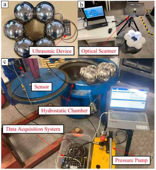 - Zhang, J.; Zhang, Y.; Wang, F.; Zhu, Y.; Cui, W.; Chen, Y. Experimental and numerical studies on the buckling of the hemispherical shells made of maraging steel subjected to extremely high external pressure. Int. J. Press. Vessel. Pip. 2019, 172, 56–64. [Google Scholar] [CrossRef]