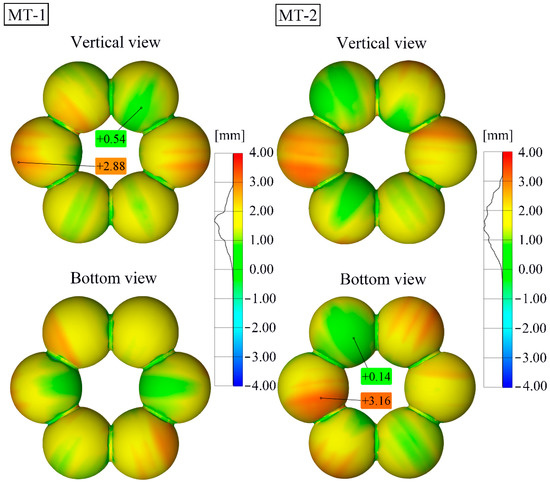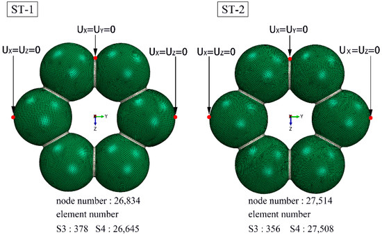 3.2. Numerical Analysis of the Two Manufactured Sphere-Segmented Toroidal Shells