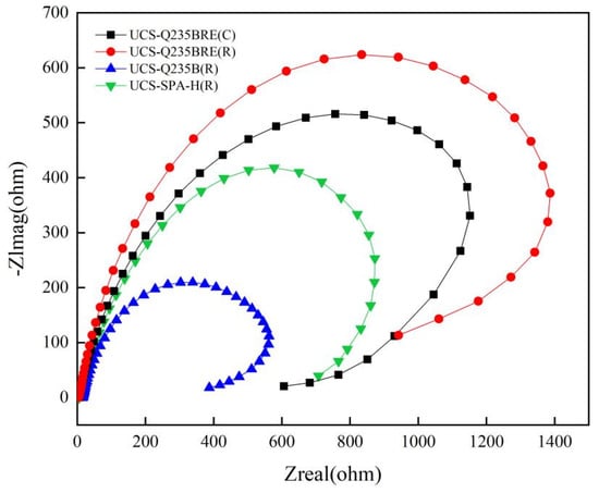 Nyquist plots for specimens.