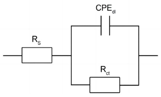 The Nyquist and Bode plots under open-circuit potential were presented in Figure 6. The impedance spectra of the steels showed a single semicircle [19,20]. Based on the above impedance spectrum features, the physical model and equivalent circuit for fitting the EIS data are offered in Figure 7. A solution resistance Rs of the test electrolyte between the working electrode, reference electrode, and charge transfer resistance Rct are presented. A constant phase element (CPE) represents the capacitance to allow for depressed semicircles.